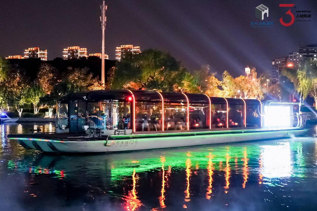 苏州环古城河“姑苏夜画”项目历经三年打造,将平门至齐门 3 公里水岸线升级为集历史人文、吴地风情、科技光影于一体的沉浸式文化体验带。首航仪式在齐门码头举行,以 “评弹雅集 + 无人机光影秀 + 游船体验” 三大板块立体呈现苏州 “双面绣” 的城市特质,让游客在船游梦境中感悟“人间天堂、福气苏州” 之美与 “水城共生” 的吴地智慧。